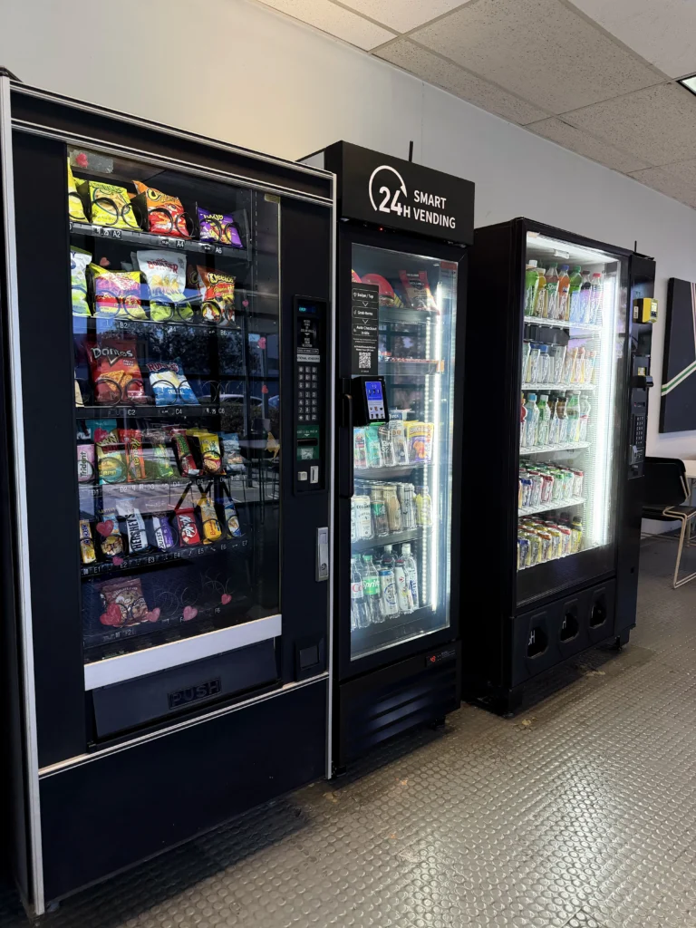 Tap, grab, and go with AI-powered coolers or use traditional machines with cash and card options.